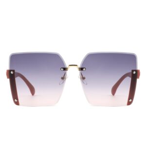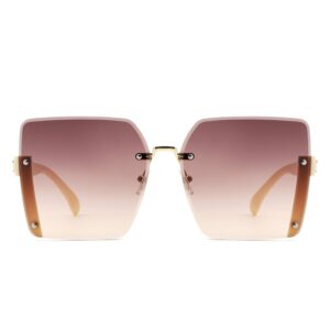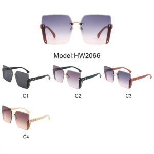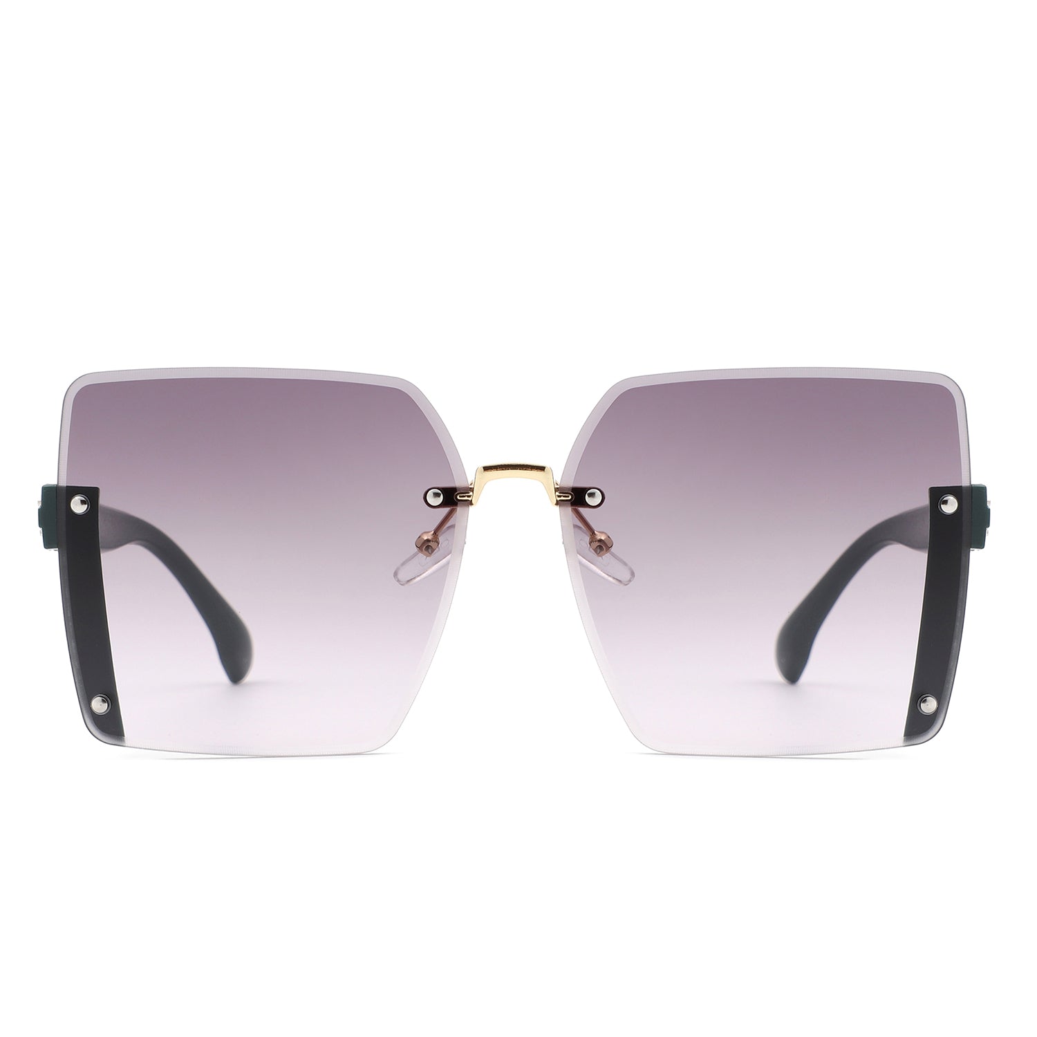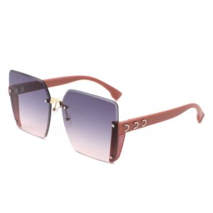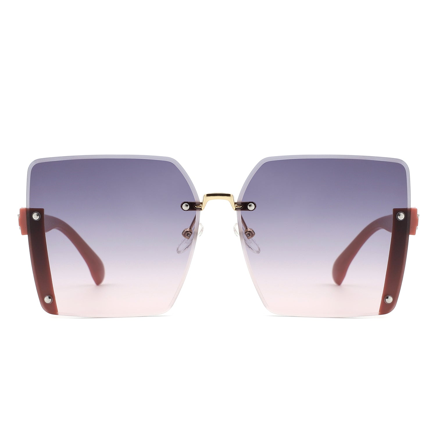 These sunglasses are designed for everyday outdoor use and general eye coverage in bright conditions. They feature a rimless square frame with PC lenses supported by plastic frame components and a flat top profile. The frame width measures 147 mm, with a lens width of 63 mm and lens height of 58 mm. The bridge width is 15 mm, and the temple length is 144 mm, providing a standard fit for most adult users.